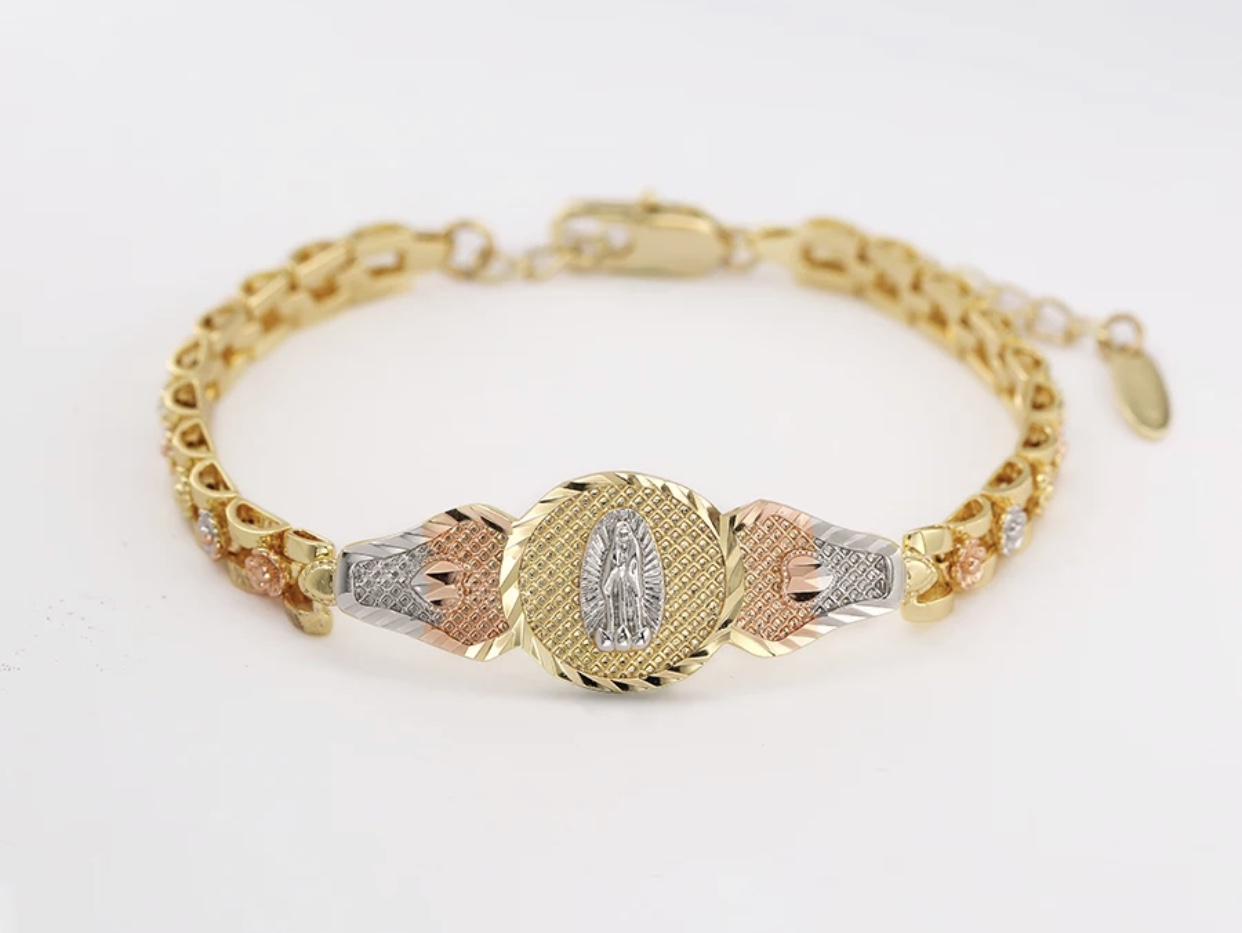 Tri-Color Virgin Mary Bracelet – Elegant Religious Jewelry